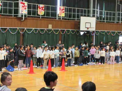 体育館に子どもたちの声が広がり、6年生への感謝の気持ちがやさしく届けられました。