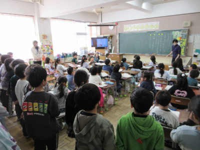 2年生が見守る中で、少し緊張しながらも、一生懸命に手を挙げたり、自分の言葉で話そうとする姿が見られました。