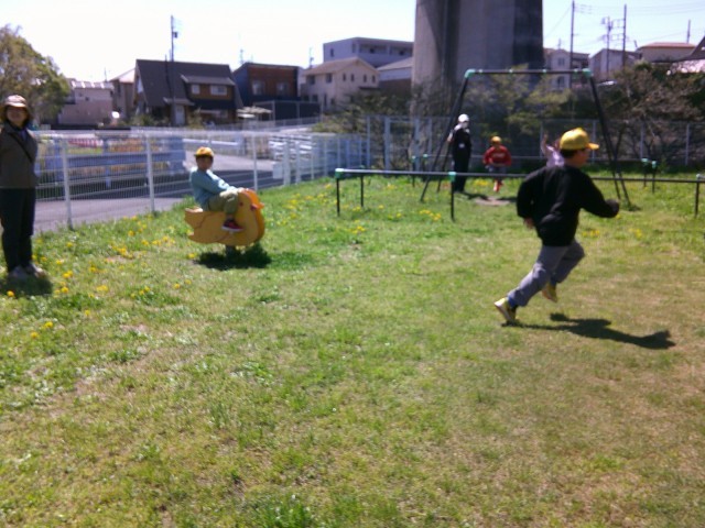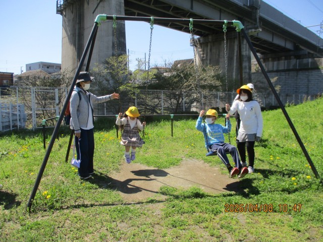 公園ではブランコやすべり台をしたり、鬼ごっこをしたりとのびのび過ごしました。今日は日差しが暖かく、「暑かった!」と汗を流すほど動き回っていた子もいました。
