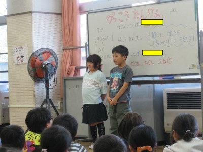 昨年度1年生だった2年生は、自分たちが案内してもらった経験をいかして、今年度は自分たちが1年生に学校を紹介する番です。この日のために、練習を重ね、本番に臨んだ子どもたち。「はじめの会」から、やる気に満ちあふれていました。