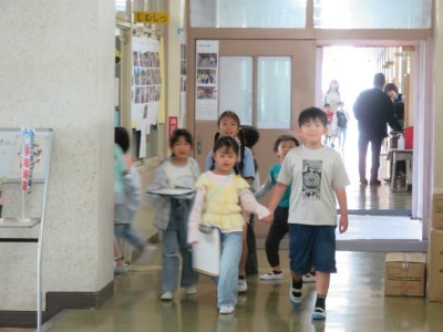 その後、1年生と2年生は、グループごとに「学校たんけん」へと出発しました。