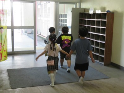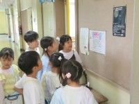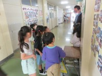 廊下や階段を連れて歩くときには、しっかりと手をつなぎ、先生との約束通り、1年生のペースに合わせてゆっくり歩いたり、「右側通行だよ。」などと歩く場所を教えたりしながら、上手に優しく誘導していました。