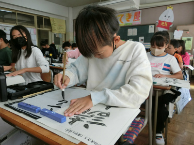 10月25日(水)の5年生書写(毛筆)の授業の様子です。
