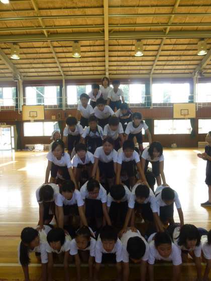 運動会練習も大詰め。先日、6年生全員で一つの大きなピラミッドを立ち上げました。