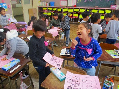 生活科の時間に、クラスの友だちに挨拶をして、サインを書いてもらう活動をしました。