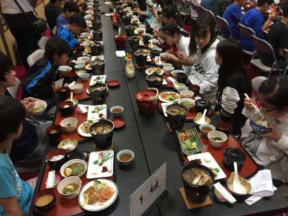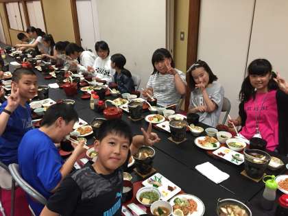 夕食はこんなに豪華!子どもたちも大喜び!そして・・・おかわり自由!何回おかわりをするのでしょう!?東観荘のお米をみんなで食べつくそう!先生も負けません!
