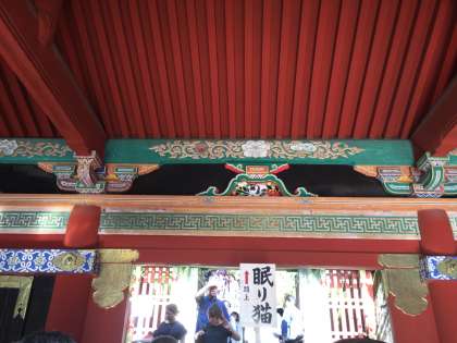 次は奥社に向かいます。入口には眠り猫!その裏には雀の彫刻があります。さて、猫と雀の関係・・・皆さんはご存知ですか?
