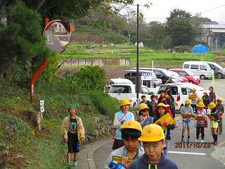 4年生は社会科の学習で、交通事故から私たちを守る身の回りの設備について調べています。下中地区の学区探検に行き、信号機や横断歩道、カーブミラー、標識等を探し、地図にかき込みました。普段は気付かなかった物でも、意識して探すとたくさんの設備があることが分かりました。私たちの身の回りには、私たちを守ってくれる人や物がたくさんあることに、改めて気付けたようです。