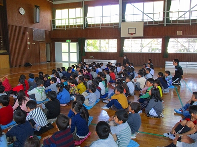 木曜日の3校時、防犯教室がありました。出かけるときには行き先を伝えることや一人では遊ばないことなど、危険な目に遭わないようにするための約束などを学びました。また、挨拶がしっかりできる子は、いざというときに大声を出すことができるというお話を聞きました。普段から元気な声が出せるのは、自分の身を守ることができると言うことですね。お話の他に不審者にあったら逃げる練習や助けを求める練習などを行いました。