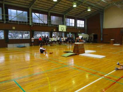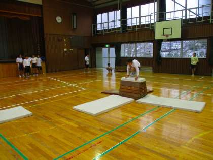自分が跳べる段数を一人ずつ発表しました。いい緊張感のなか子どもたちは一生懸命取り組み、見ている側は、拍手をしたり、声をかけたりしてとても良い雰囲気で活動できました。
