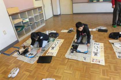 という言葉を書きます。子ども達にとって大きく文字を書くことはなかなか難しいですが、立派な作品が仕上がるよう、これからも練習を重ねていきたいと思います。