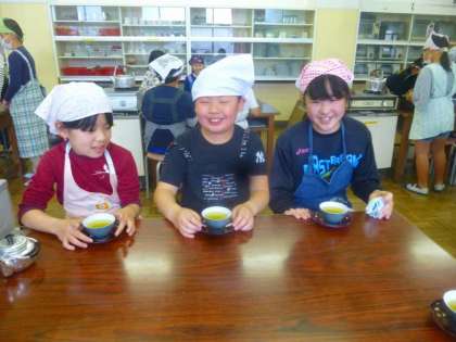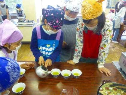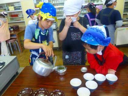 家庭科の「わが家にズームイン!」の学習で、お茶をいれる調理実習を行いました。5年生になって初めての調理実習だったので、用具の使い方やガスコンロの設置方法などから学習しました。点火前に注意することをしっかりと確認しながら、お湯を沸かしてお茶をいれました。ホッと息抜きをして団らんする際の一つの手段として、とても良い経験になったと思います。