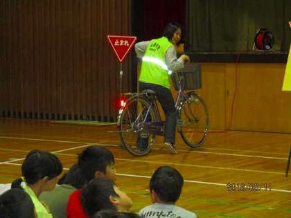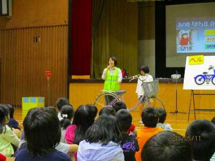 11日(金)の3時間目に交通安全教室が行われ、自転車の点検の仕方や乗り方について学びました。