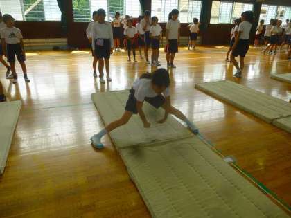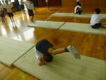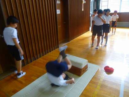 体育では「マット運動」の学習をしています。今日は、めあて1として自分が現時点で出来る技をより上手にできるように練習したり、めあて2ではできそうな技に挑戦したりしました。手の置く位置や顔の向きなどを工夫しながら、少しずつ出来る技を増やすことが出来ました。学習の最後には、技をいくつか組合わせて発表会を行う予定です。