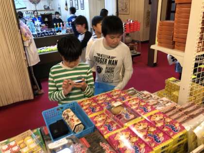 買い物真っ最中の1組の子どもたち!家族や下級生、そして自分へのお土産を買い満足そうでした。