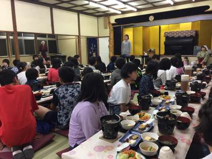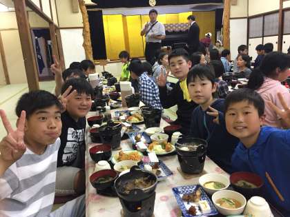夕食を目の前にに子どもたちは大喜び!そしてご飯はお代わり自由です!何回おかわりするのでしょうか!?梅屋敷のご飯をみんなで食べつくそう!先生も負けないぞ〜!