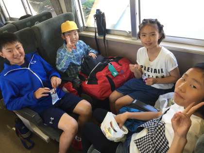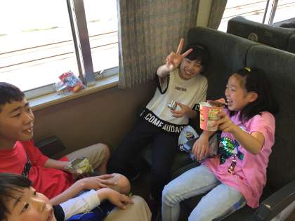友だちと一緒にお菓子を食べてみんな笑顔です!