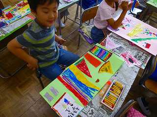 最後には見立てた紙を貼りあわせ、一枚の作品にしました。