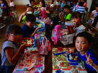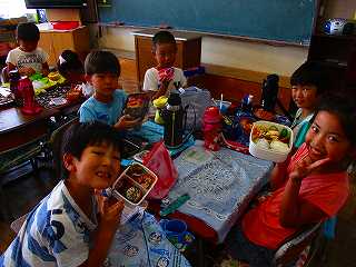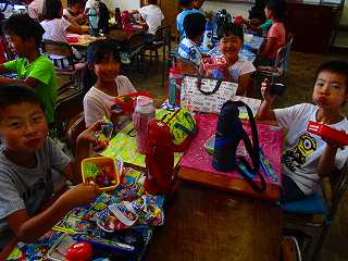 給食ではないお昼ご飯。「自分も手伝ったよ!」という声をたくさん聞きました。