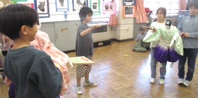 それを、下中座さんに借りた人形とともにどのように劇化させていくのかに生き生きと取り組んでいます。