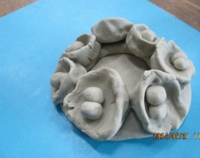 と呼びかけ、一つの固まりにして、球体を作ったり突起部分を出したりひねり出したりしました。