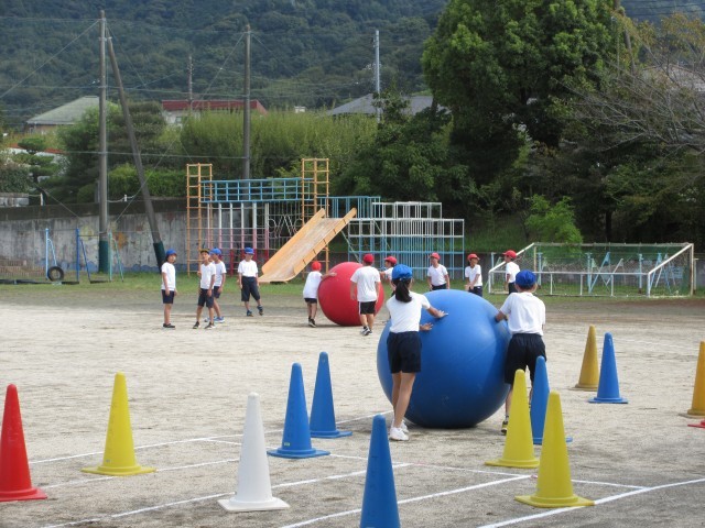 先日の5、6年生の運動会練習のHPを見てくださった方は、「あれ、また大玉の種目?」と思われたかもしれません。今日の練習は、3、4年生の様子です。なんと、大玉を使った競技が人気で、3,4年生と5、6年生が使用します。しかし、同じ大玉を使った種目ですが、競争の内容が違うので、見に来てくださった方に楽しんでいただけると思います。当日を、お楽しみに!