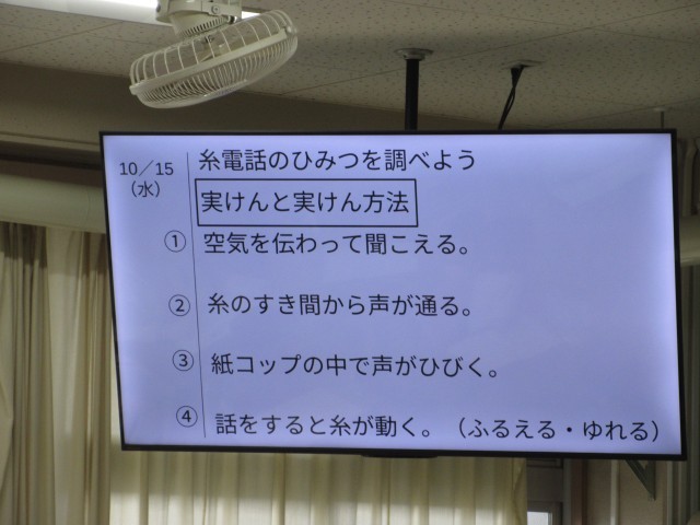 3年生の理科の学習では、糸電話の学習から、色々なことを予測し、自分なりに考えたり友達と相談したりしていました。話す友達のほうを見て、真剣に話を聞く姿が素晴らしかったです。