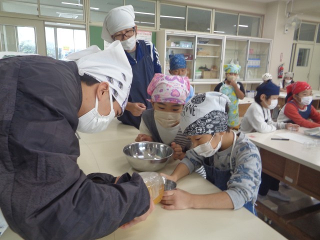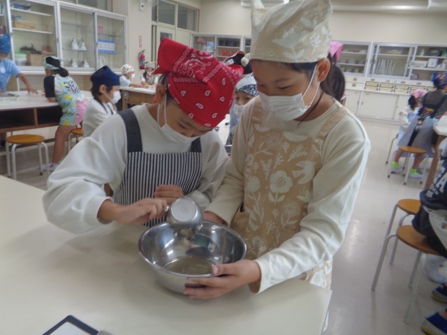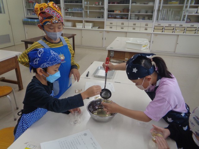 3年生が、残った梅ジュースを使って「梅ゼリー作り」をしました。梅シロップや水のかさと、ゼラチンの重さを慎重に量る教師と子ども達。真剣な作業の結果、美味なゼリーが出来あがりました!
