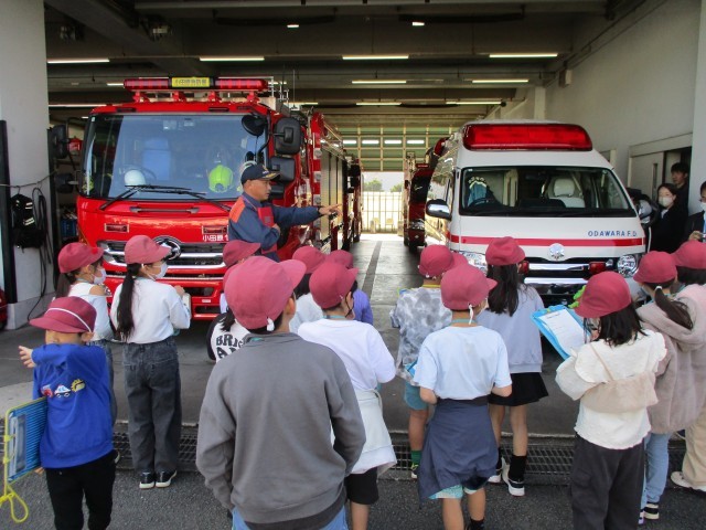 3年生が、小田原消防署へ校外学習へ出かけました。徒歩で出かけたので、片道50分ほどかかりましたが、子ども達は頑張って歩きました。消防署では、車の中の様子やロッカーなど、普段目にするできないところまで見学させていただきました。子ども達にとって、とても貴重な経験となりました。小田原消防署の皆様、本当にありがとうございました。