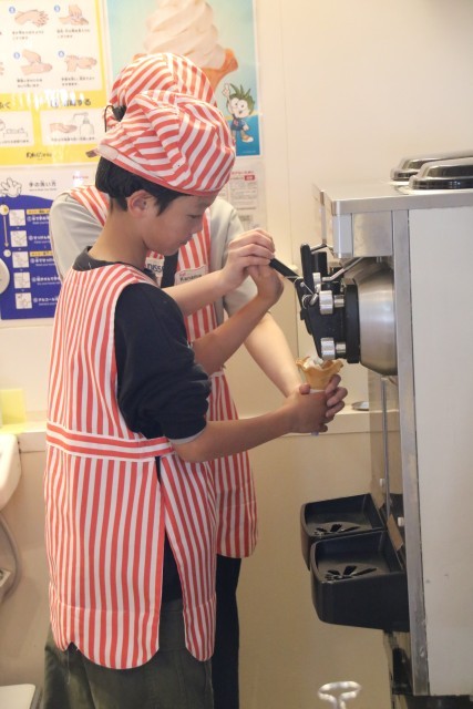 それぞれの職業の服を着ることもできたので、本当に仕事しているような気持になって体験することができました。そして、何よりも、子ども達は色々な制服がよく似合う!!笑顔で接客をしたり、物作りをしたりする姿は堂々としたものでした。将来の夢につながったことと思います。