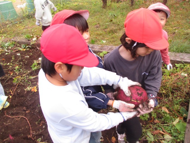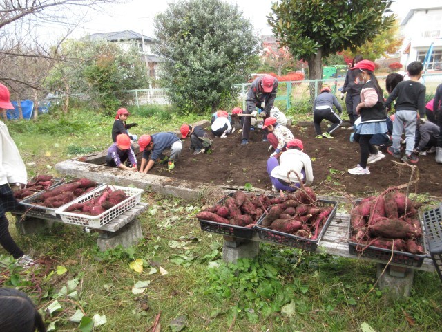 3、4年生がキッザニア東京で楽しんでいるころ、1、2年生は畑の芋堀にいそしんでいました。掘るたびに、大きな大きな芋が出てきて、子ども達は大興奮でした。数も多く、大豊作でした!後日、芋料理に挑戦し、収穫パーティーを開くそうです。きっとおいしい料理ができると思います!