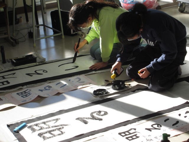 昨日に引き続き、席書会を行いました。今日は、3、4年生の実施です。