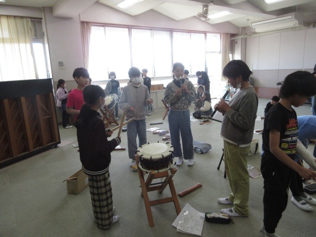 外にいたら、3階の音楽室付近から、太鼓やお囃子の音が聞こえてきました。「お祭り?」と思い行ってみると、4年生が音楽で太鼓などの楽器を演奏していました。お囃子は、リコーダーで演奏していました。下曽我の子どもたちは、地域の祭りで太鼓などを演奏しているので、さすが、上手でした!