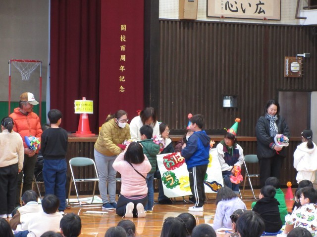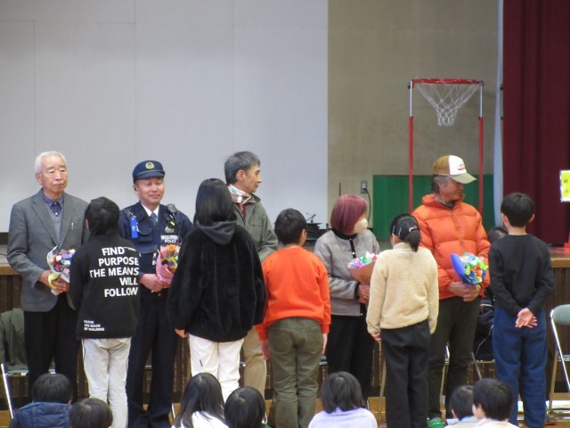 子ども達から花を受け取るときのボランティアの皆さんの表情や優しく、子ども達は緊張しつつとても嬉しそうでした。