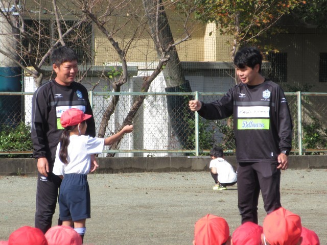 ベルマーレの方が、体育巡回授業に来てくださいました。「楽しく運動しながら、自然とサッカーの技術も身についている」という、魔法のような指導をしてくださいました。サッカーを苦手に思っていた子も、時間いっぱい楽しくサッカーを楽しんでいました。「自分で判断して行動する」や「周りのことを考えて行動する」など、技術以外の大切なことも教えてくださいました。子ども達にとって、とてもいい経験ができました。指導くださったベルマーレの方、ありがとうございました!