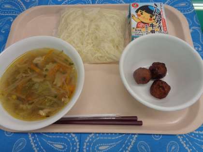 献立 牛乳 塩コーンラーメン 肉団子の中華あんかけ