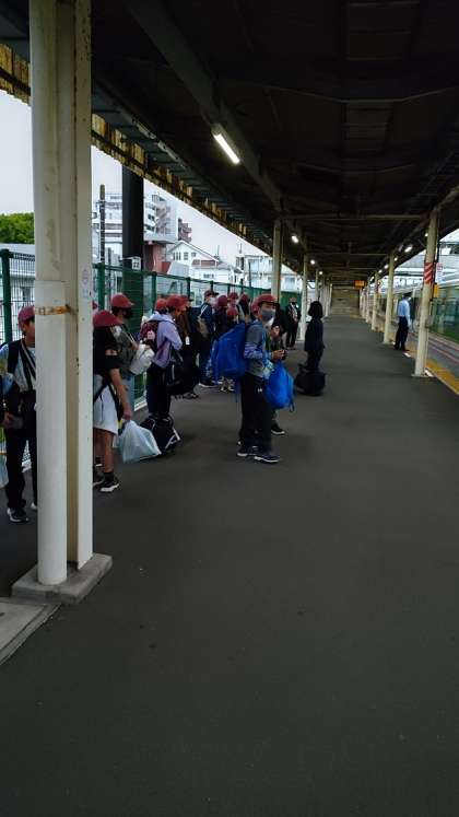 国府津駅に着きました。退団式を終え、下曽我駅へ向かいます。