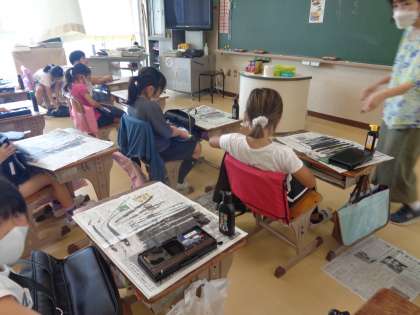 3年生は、初めての毛筆の学習をしました。「最初が大事!」ということで、子ども達は用具の扱い方や準備の仕方、片づけ方などの基本を学びました。実際に筆で線を書く時は、緊張している様子でした。今日の気持ちを忘れず、「毛筆が楽しみ!」となるとうれしいです。