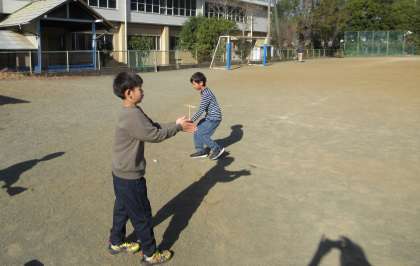 生活科で「昔あそび」の学習をしていました。けん玉や羽子板、竹とんぼなど、懐かしい遊びを楽しんでいました。何回も練習して成功するととても嬉しそうでした。