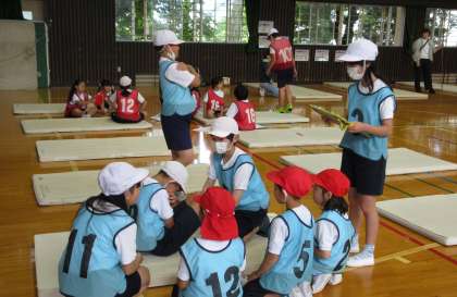 昨日の雨から一転し、今日は晴天となり、体力テストを予定通り実施することができました。外ではソフトボール投げを体育館ではシャトルランなどを行いました。1年生と6年生、2年生と5年生はペアとなって行いました。多くの保護者の方がボランティアとして参加くださり、スムーズに実施することができました!