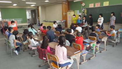 縦割り班結成式を朝の時間に行いました。1年生から6年生までの児童を6班に編成し、活動していきます。9月の運動会には赤黄青の3組にし、競い合います。10月の「ふるさと探検ウォーク」もこの班が24班に分かれ活動します。