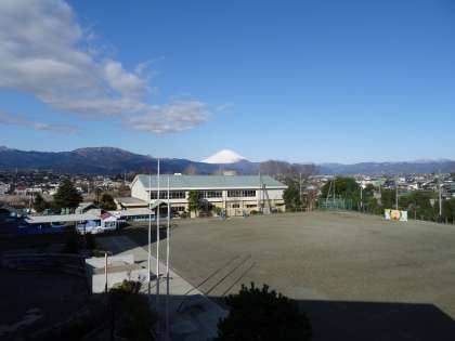 久しぶりの快晴で、きれいな富士山が見えますが、山頂にはかぜで舞い上がる雪や雲が渦巻いているのがわかります。この撮影後、あっという間に雲が広がりました。朝から風が強く、たいへん寒く感じます。