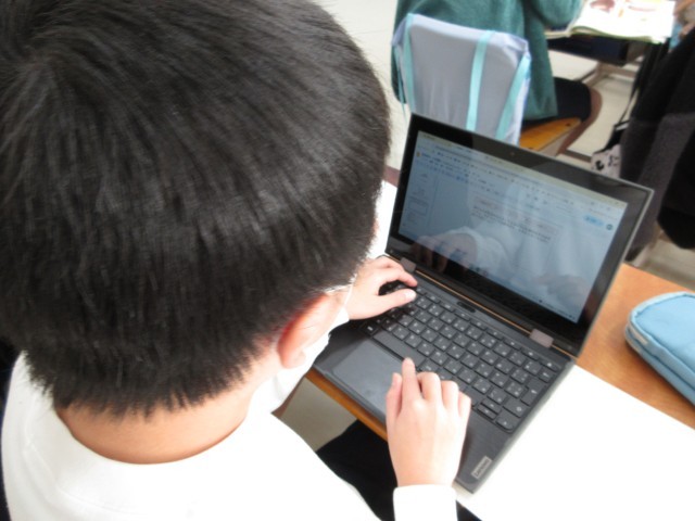 5年生は、理科で「人のたんじょう」について学習していました。動画を見た後、分かったことや気づいたこと、思ったことをスライドにまとめていました。「人って、初めはこんなに小さかったんだ!」と驚いていました。学習用端末を活用する力が知ったりと身についている5年生に感心しました。