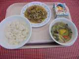 献立 牛乳 麦入りご飯 豚肉のショウガ炒め さつま汁