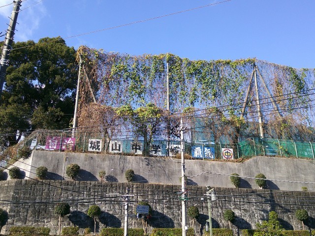 小田原市教育委員会にお願いをして、校舎西側の公道から本校敷地に向けての斜面、校舎北側の散策路、テニスコート・クロカンロード周辺、校庭東側・南側のネットにかかる蔦…などの伐採をしていただきました。今まで見えなかった景色がみられるようになり、新たな気づきも生まれることでしょう。校名板もはっきり見えるようになりました。