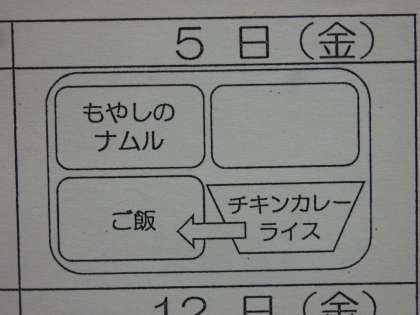 チキンカレーライスにもやしのナムルでした。食事を終えた3年生の男子生徒は、カレーがいつもよりピリ辛でご飯に合って美味しかったです、と言っていました。
