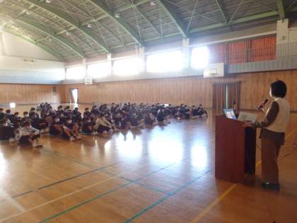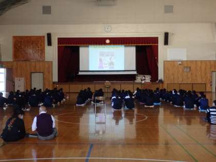 6校時、体育館2Fアリーナで、1年生が保健講話を受けていました。内容は「正しい薬の使い方」で、本校の薬剤師の方に講師をしていただきました。講話を聞いた1年生の女子生徒は、タバコや薬がダメなことは知っていましたが、ニコチンのこと、依存性があることを知りました、私は頭痛持ちで薬を飲むことがありますが、母が飲み過ぎると効かなくなるからしっかり寝て治しなさい、と言っていた意味を理解することができました、と言っていました。