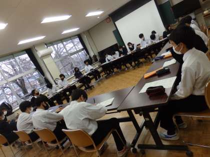 放課後、北館3Fの多目的ホールでは、定例の生徒会評議員会が行なわれました。先日の学年・各種委員会の内容を各委員長が報告しています。