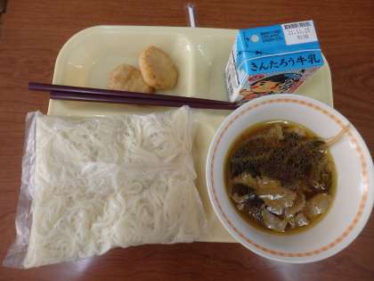 今週は神奈川県産ウィークです。八王子ラーメンにナゲットでした。八王子ラーメンは、きざみ玉ねぎが入ったご当地ラーメンです。3年生の男子生徒は、ナゲットがジューシーで美味しかったですと言っていました。