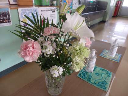 南館1Fのフロアには、校舎に入ったところに花が飾られていて、私たちの心を癒やしてくれます。